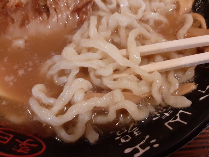 麺は3種類(ストレート細麺・手揉み縮れ太麺・刀削麺)から選択できます。おすすめを聞いたら太麺とのことだったので、手揉み縮れ太麺を選択しました。麺はコシや食べ応えは抜群で、ワシワシとした食感で美味しかったです。
