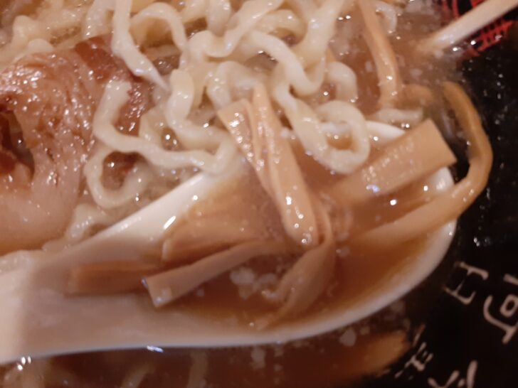 具材は、チャーシュー、煮卵(半個)、メンマ、ネギ、のり1枚ですね。