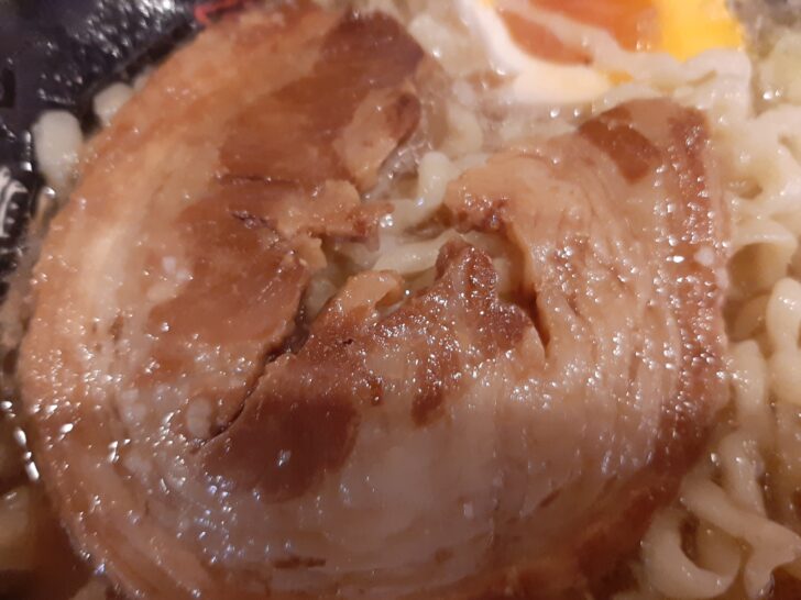 豚バラ肉のシャーシューは、1枚ですが、大きくて厚さもありました。味付けは良いのですが、若干、肉が硬かったですね。
