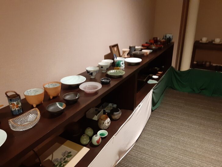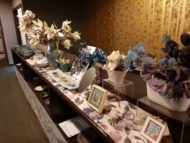 2階の廊下や窓際のスペースには、陶器などが展示されていました。ディスプレイも良いですね。