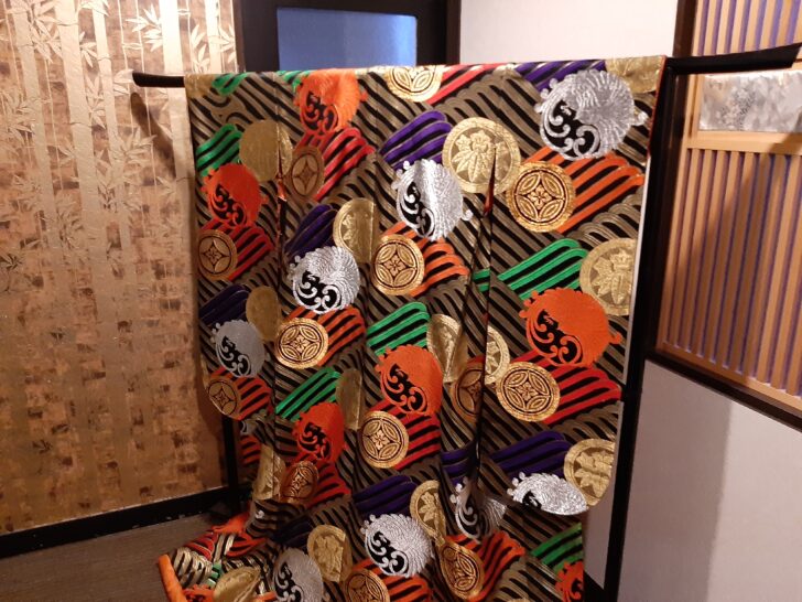 2階への階段の途中に高級そうな打掛が飾ってありました。