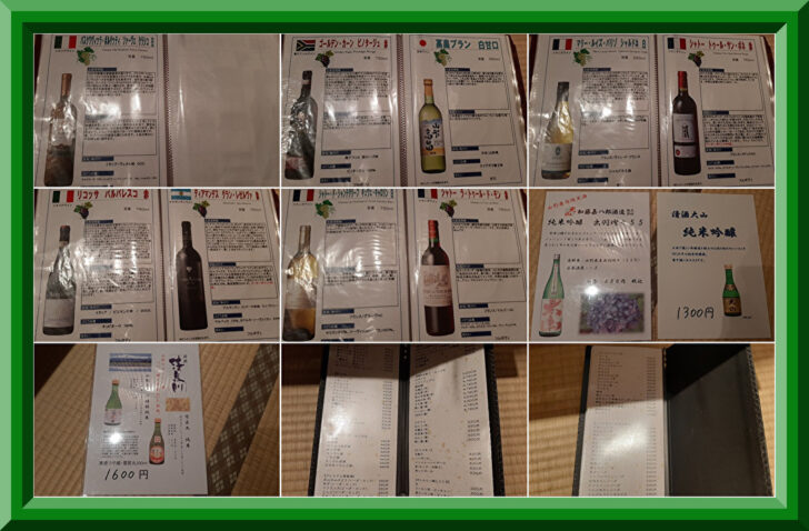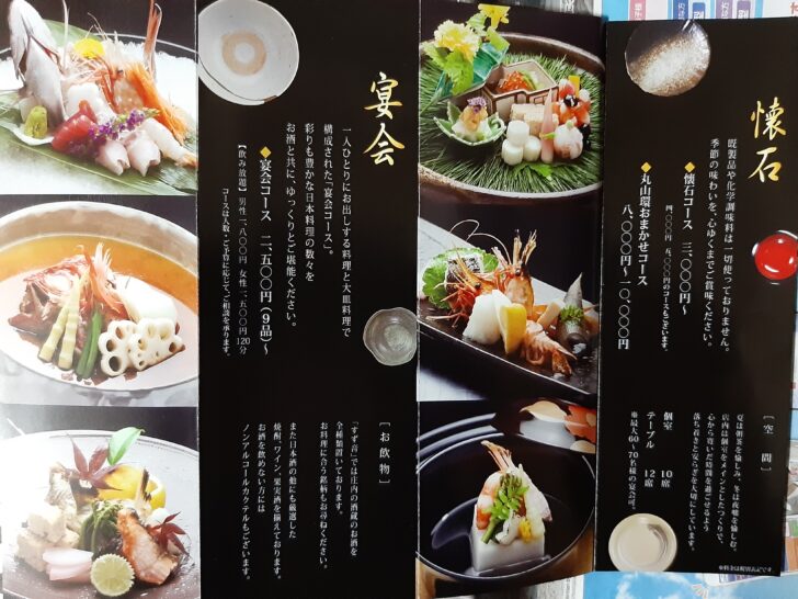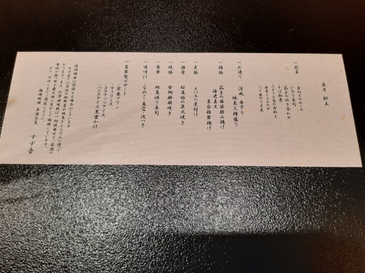 今回注文した「懐石コース」のお品書きはこちらの9品ですね。