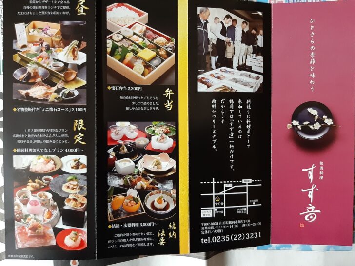 鶴岡料理『すず音』は、和食のお店で、料理長でオーナーである、丸山さんは、日本料理コンクールには何度も上位入賞し、ついには日本料理で日本一になった方です。また、系列店として酒田料理『銀のすず』とテイクアウト専門『鈴なり』の全部で3店舗を運営しています。『すず音』のこだわりは、地元庄内の食材のみを使用した料理で、既製品や、化学調味料を一切使用していません。特に、素材としての魚にこだわっていて、鶴岡の料理店で唯一、朝競りに参加して、鮮度抜群の魚をリーズナブルに提供することが可能になっているようです。現在は、コロナもあり、予約営業のみとなっているようですが、かなり前から予約しないと、とれないようです。更には『鈴なり』のお弁当が、「お弁当・お惣菜大賞2022」のお弁当部門で、全国第1位の最優秀賞を受賞しました。この弁当部門には、応募点数約5300点あり、その中で最優秀賞となったようです。応募した「山形まるごと弁当」は、企画・監修を管理栄養士の高橋知邑(ちさと)さん、調理と盛り付けを丸山代表が担当し、食材はご飯につや姫、炊き込みご飯に雪若丸、みそ漬けのマス、ハンバーグ、だし巻き卵、フルーツなどすべて県産を使用した。化学調味料は使わず、日本料理の基本となる素材そのものの味を生かしたものとなっているようです。