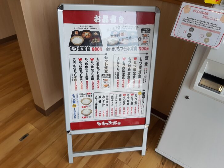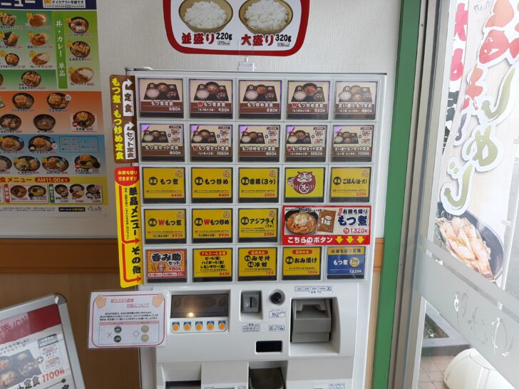 こちらが『もつ次郎』のもつ煮定食・もつ炒め定食・セット・単品の食券の券売機です。