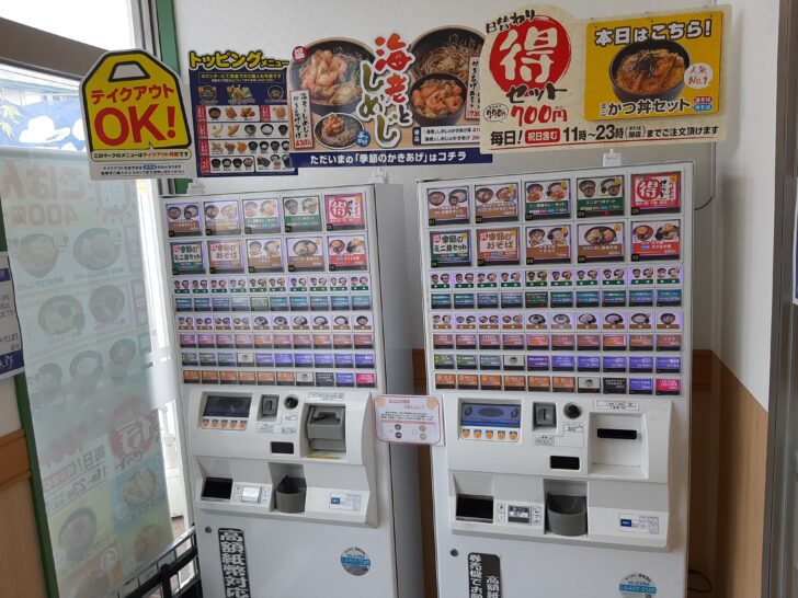 こちらは『ゆで太郎』のそば・御飯物メニューの食券の券売機ですね。