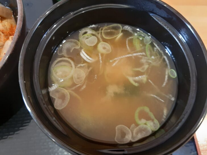 味噌汁の具はわかめとねぎだけです。
