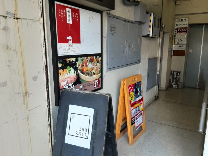 カレー店『主役はスパイス』は、丸寿ビル 5Fにある居酒屋『ノボル』を間借りして、昼(11:30~16:00)のみ営業しているお店ですね。