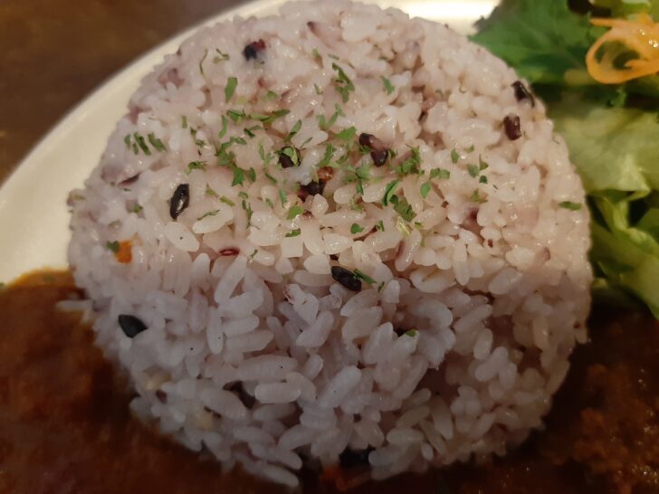 ライスは普通の白米ではなく、ヘルシーな16穀米のようです。モチモチしていて、美味しいですね。