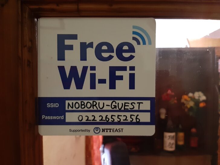 お店ではFree Wi-Fiが利用できます。Passwordは居酒屋ノボルの電話番号0222655256ですね。