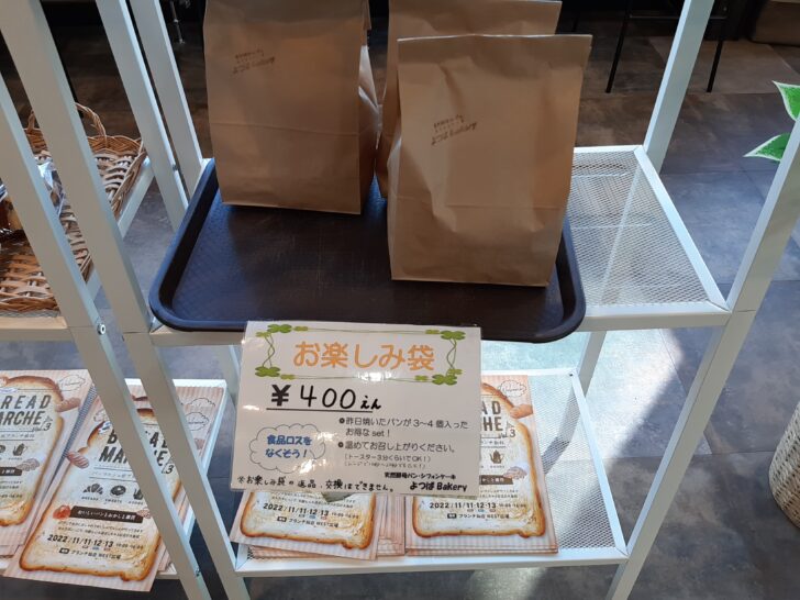 お楽しみ袋という商品がありました。これは、昨日焼いたパンが3~4個入って¥400と格安で購入できますが、中身が分からないので、ちょっと購入する気にはなれませんでした。