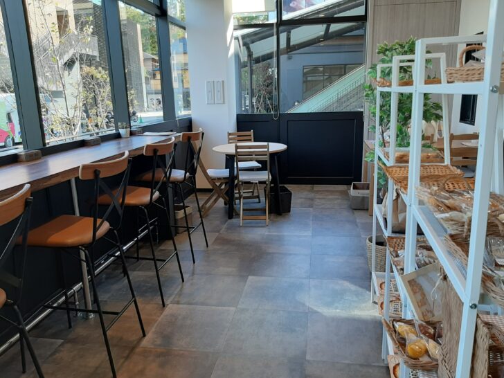 イートインスペースは18席あります。カウンター席とテーブル席があります。