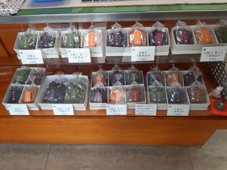 甘納豆専門店なので、甘納豆の種類は豊富ですね。単品と贈答用の詰め合わせと沢山ありました。