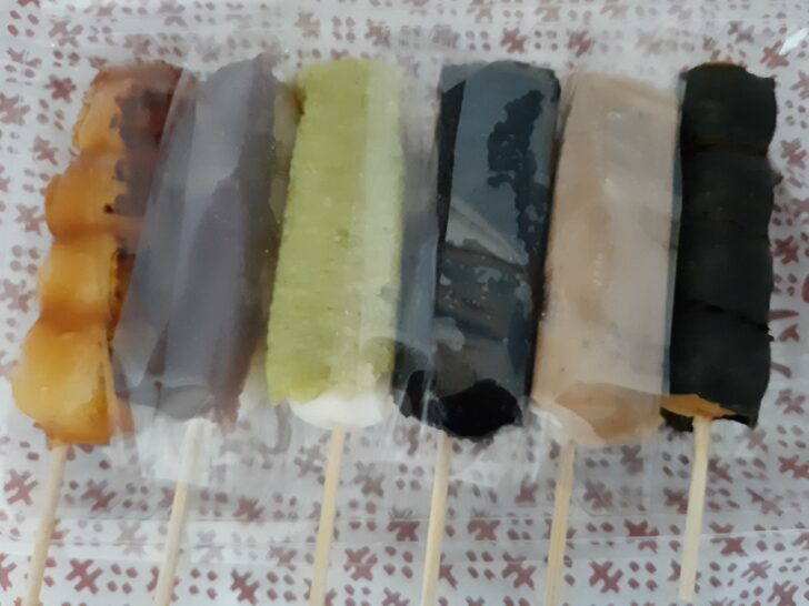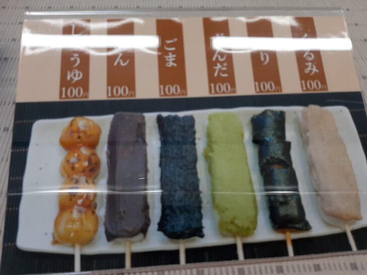 焼きだんごは、1本の串に4個刺してありますが、【110円(税込)】と激安ですね。餡もたっぷりで美味しかったです。どれも美味しいのですが、個人的には、あまじょっぱい系のしょうゆとのりが、おすすめですね。