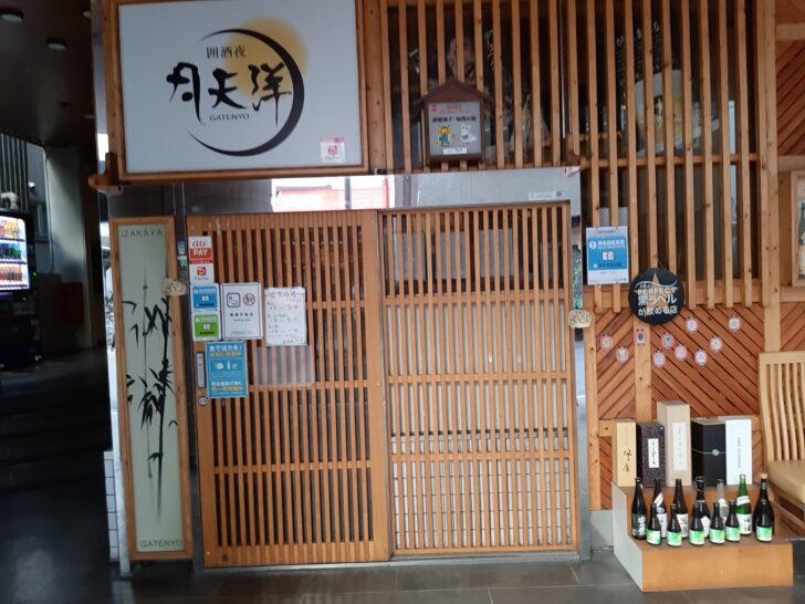 居酒屋「囲酒夜 月天洋(仮)」の入口ですが、らーめん屋の看板などはでていませんね。