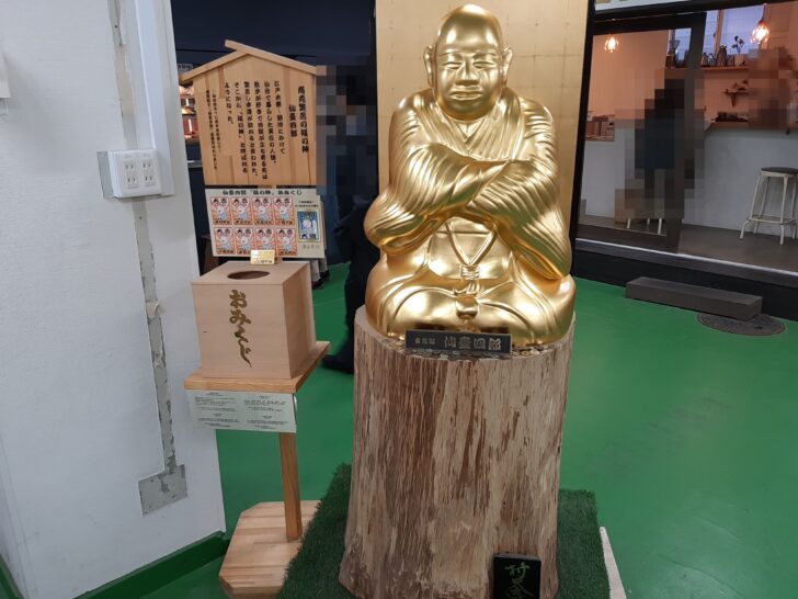 何故かこんな所に黄金の仙臺四郎の像が設置されていました。良く見ると200円で引ける【仙臺四郎 福の神】のおみくじでした。