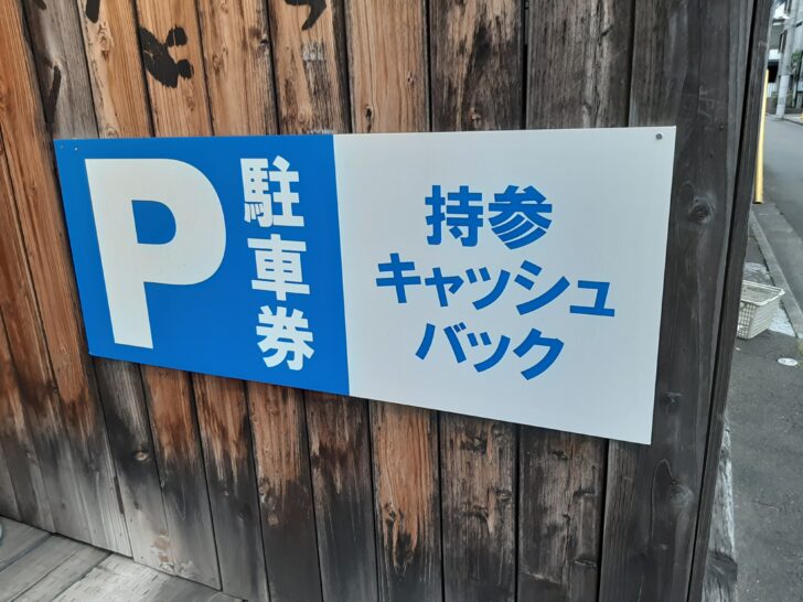 こんな看板があったので、駐車券を持って行けばキャッシュバックして貰えると思ったのですが、お店の方に聞いたら、6,000円以上注文した場合に適用されるとのことです。なので、ディナーの場合用ですね。今回近くのコインパーキングに停めたのですが、200円/40分の所に停めたら、少し時間オーバーして、400円も取られてしましました。