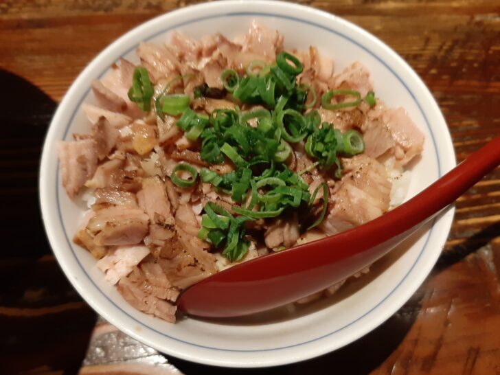 ミニチャーシュー丼は【200円】とコスパも最高で、豚チャーシューがたっぷり載っていて、間違いない美味しさですね。国産豚のチャーシューを細かく刻んだチャーシュー丼がおすすめ。肩ロースを8時間ほど低温で煮た後、特製だれでひと晩寝かせた旨味と香りのいい一品である。