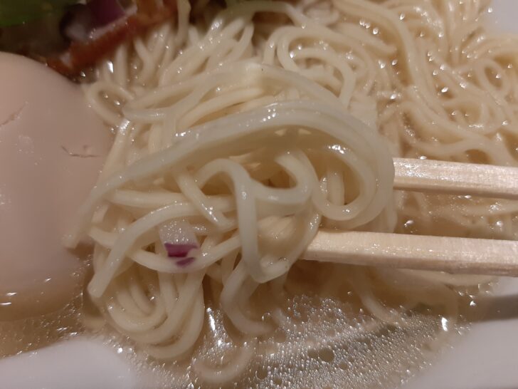 麺は細ストレートで、国産小麦粉にパスタに使用するデュラムセモリナ粉を配合した腰のある麺でしたが、個人的には、もう少し固めでも良かったかな?と思いました。