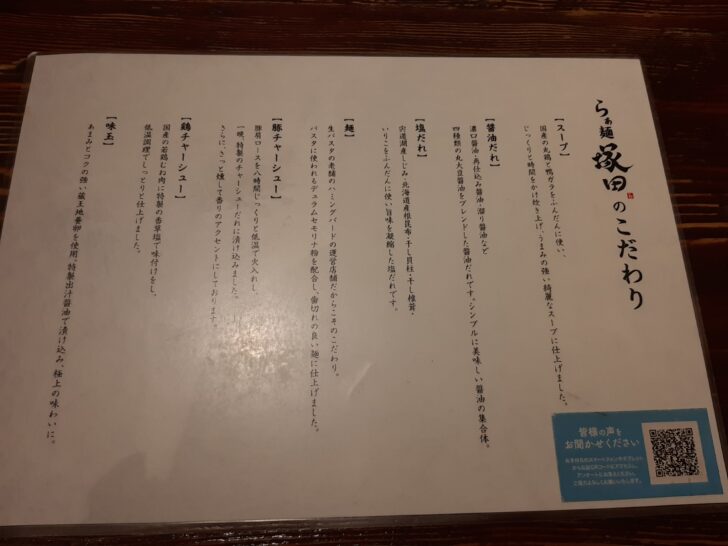 『らぁ麺塚田』は、鶏料理専門店『炙屋十兵衛 二日町本店』がランチタイムのみ営業しているお店です。いわゆる二毛作として、鶏にこだわった旨いラーメンを提供しているようなので紹介します。残念ですが『らぁ麺塚田』は、『炙屋十兵衛 二日町本店』の閉店に伴い、2023年3月31日に営業終了しました。