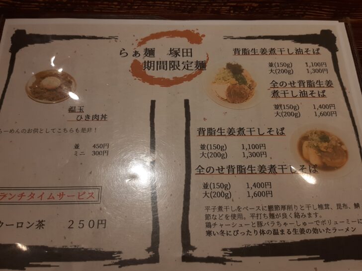 『らぁ麺塚田』は、『炙屋十兵衛 二日町本店』が、ランチタイム(11:30~14:30)のみ営業しているお店ですね。