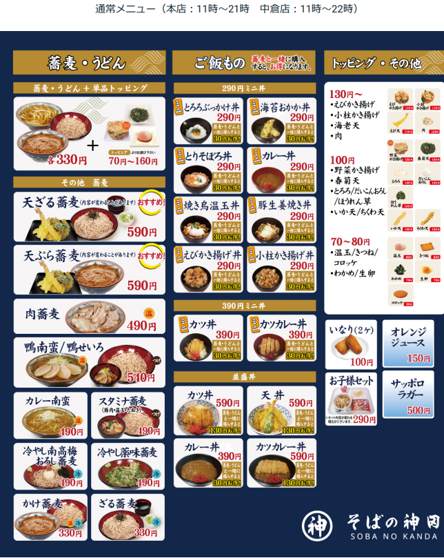 『そばの神田』町前屋のメニュー
