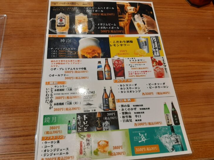 ラーメン・餃子『老家(ロウカ)』の飲み放題は、「90分飲み放題\990(税込1089円)」というものですが、瓶ビール生ビールは含まれていません。その飲み放題メニューの詳細は次の通りです。