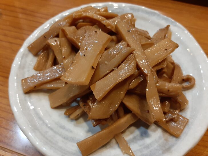 実は『老家』は、お通しがないので、お通し代が掛かりません。最初のつまみは、味付メンマ【税込\275】を注文しました。値段は安いのに、この盛りの良さが良いですね。食べてみたら、味付も良く美味しいですね。