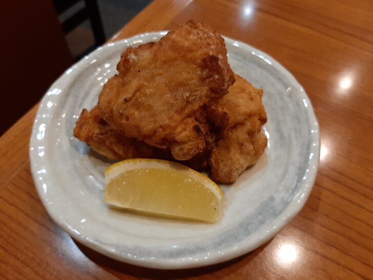 4品目は、唐揚げ(塩)【税込\385】を注文。唐揚げは、醤油と塩の2種類あるのですが、お店の方に聞いたら、塩がおすすめとのことでした。