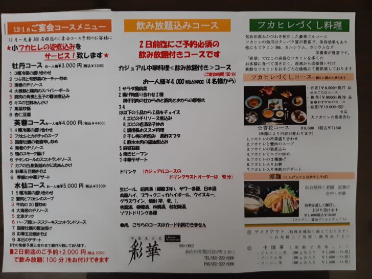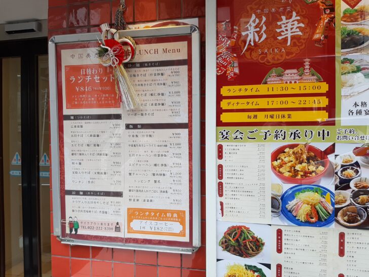 中国美点菜『彩華(さいか)』は、大正14年(西暦1925年)創業のお店で、2023年で98年目というもの凄い歴史がある仙台国分町の老舗中華料理ですね。美味しくて本格的な中華料理をリーズナブルな価格で提供すると評判のお店で、ランチタイムやディナータイム、宴会にも最適なコース料理を提供するなど人気店となっています。また、2013年6月にリニューアルされてからは、完全個室のテーブル席、半個室のテーブル席、貸切個室空間など、ハイクオリティで綺麗な空間をご提供出来るようになったようです。