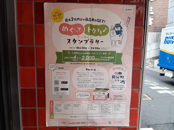 『彩華(さいか)』は、『めぐとく』スタンプラリーの参加店にもなっています。国分町エリアなので、2,000円以上でスタンプを2つ貰えるのでお得ですね。