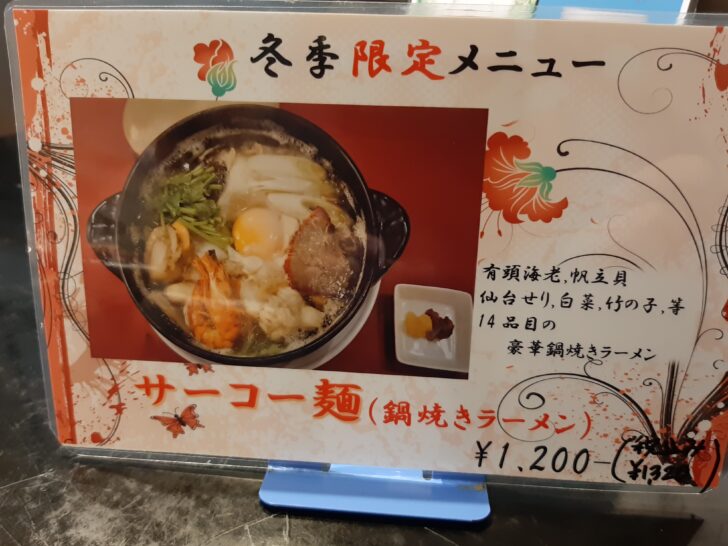 仙台市青葉区国分町の老舗人気中華料理店『彩華(さいか)』で冬季限定メニューの「サーコー麺(鍋焼きラーメン)」を食べてみたら、具沢山で激旨だったので紹介します。