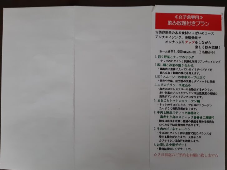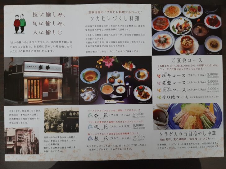 中国美点菜『彩華(さいか)』のディナーコースメニュー