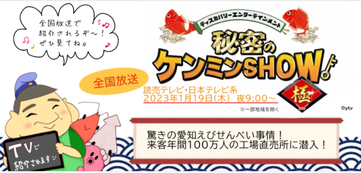 2023年1月19日の「秘密のケンミンSHOW極」で紹介される愛知県知多郡美浜町にある『えびせんべいの里 美浜本店』のえびせんべいに対するこだわり・情熱・愛情が凄いので紹介します。