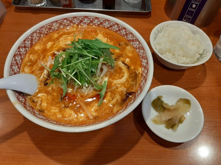 『とんとんラーメン』の一番人気の「酸辣湯麺」【税込980円】と「小ライス」【税込120円】を注文。