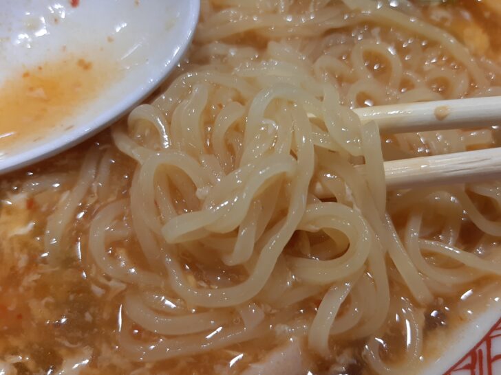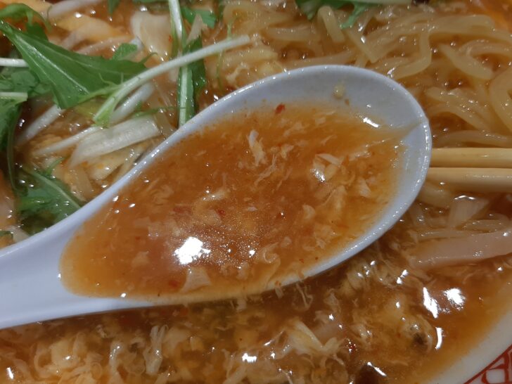 熱々のスープは酸味と辛味のバランスが絶妙で、強めのトロミが麺に絡んで、いつまでも冷めことなく、最後まで熱々で食べられました。