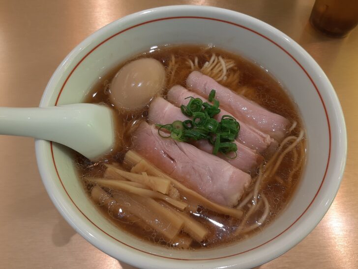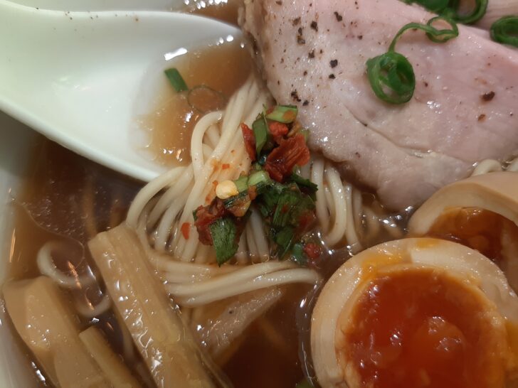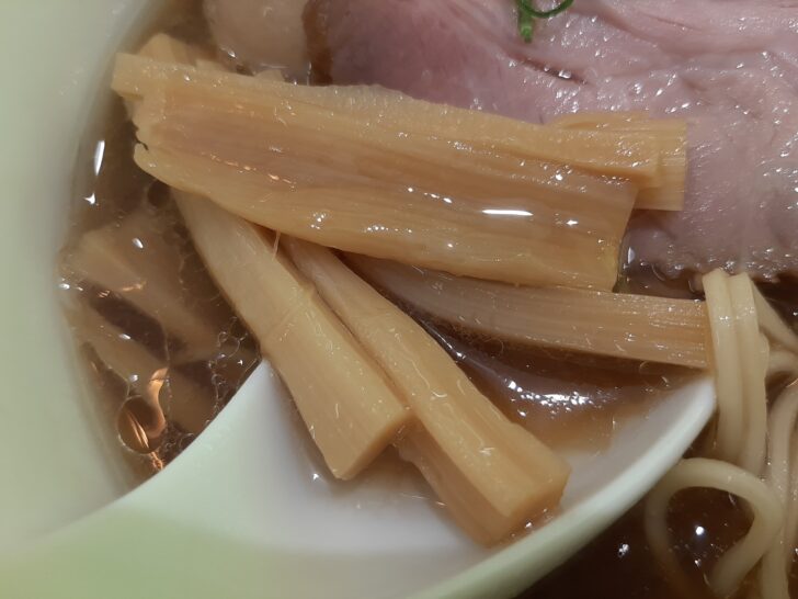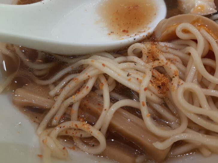醤油味のスープは、軍鶏の旨味がすごく感じられて、間違いない美味しさでした。