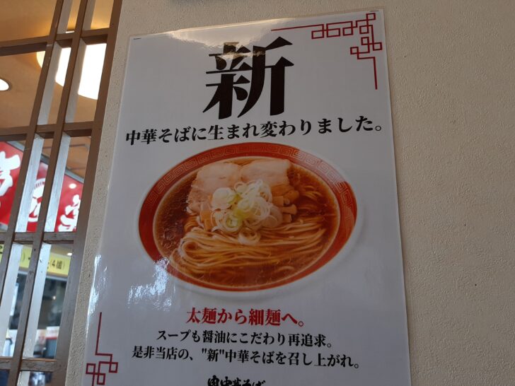 リニューアルで看板メニューの『中華そば』も『新中華そば』生まれ変わったようです。麺が太麺⇒細麺へ、スープも醤油にこだわり再追及したようですね。