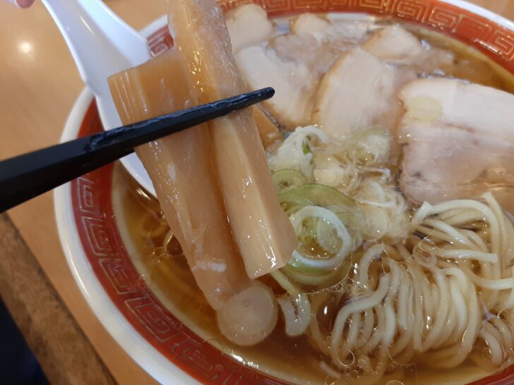 極太メンマは味付けは良いのですが、少し硬めなので、年配者の私は嚙み切るのが大変でした。若い人は食感が良いと思うかも知れませんが。