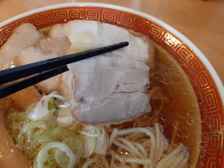 チャーシューは厚切りで美味しいですが、食感が少し硬めでした。個人的には、ほろほろと柔らかいチャーシューの方がが好きです。