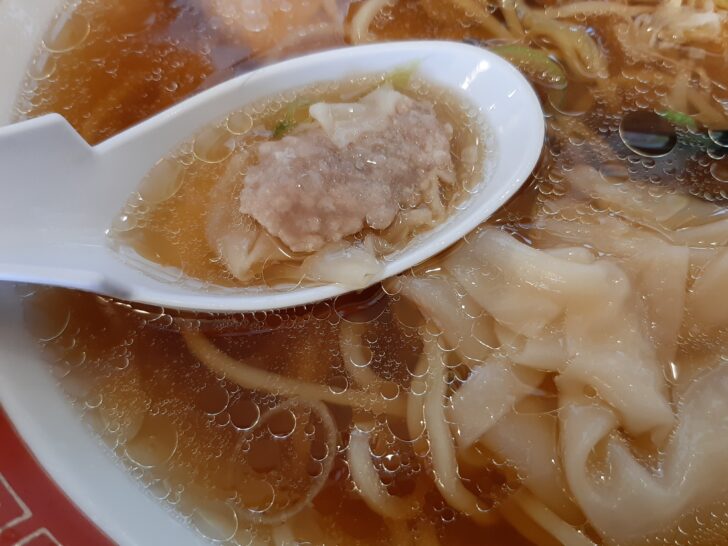 店内で手包みした肉ワンタンは、大きくてツルツルした食感の皮と旨味がたっぷりの豚肉がとっても美味しいです。また、醤油スープにも良く合うので、まさにお店を代表するメニューですね。