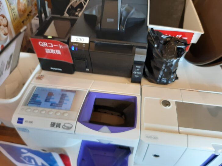支払いは、レシートのQRコードを読み込んで、自動精算機に現金を投入する最新式システムとなっています。