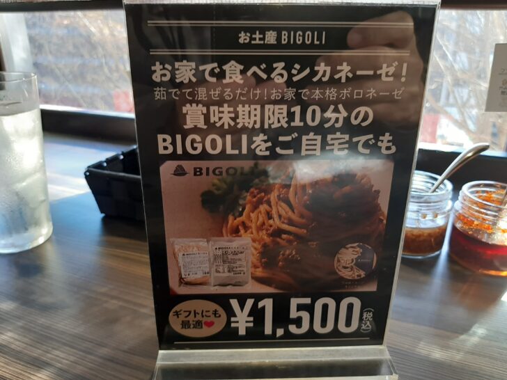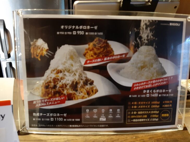 店名の通り、ボロネーゼだけを提供するボロネーゼの専門店ですね。ボロネーゼ専門メーカーBIGOLI(ビゴリ)とのライセンス契約店で、東北初出店です。山盛りチーズと、お肉がタップリと入っている「ボロネーゼ」はビジュアル的にも人気のようですね。