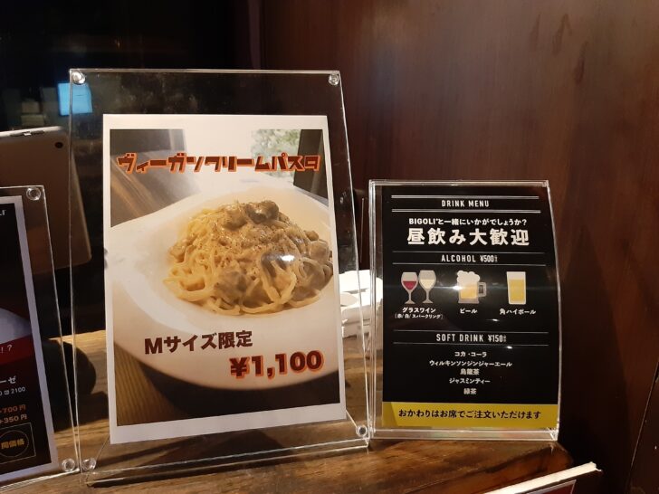 ボロネーゼ専門店なのに、なんと「ヴィーガンクリームパスタ」というメニューもありました。ヴィーガンの人には嬉しいですね。また、一般の人もヘルシーなメニューなので、食べてみたいですね。私もヴィーガン用メニューには興味があるので、次回は食べてみたいと思います。しかし、不思議な事に、こんなメニューがあることはお店のinstagram等でもアナウンスされていないですね。