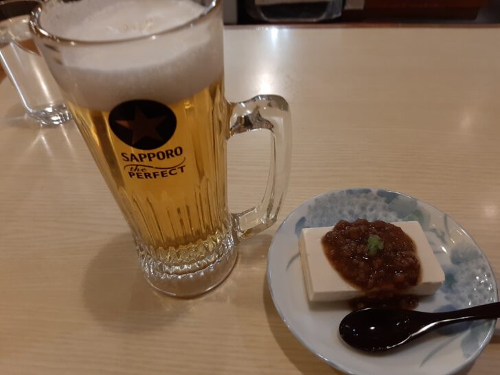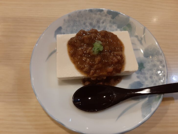 すぐにタン豆腐が提供されました。これは、豆腐に牛たんのミンチのそぼろ餡が掛けてある料理で中々美味しいですね。