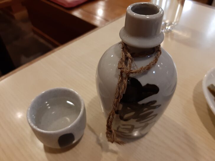 2杯目は、日本酒です。黄金澤(本醸造) 1合です。常温か熱燗を選択できますが、今回は常温にしました。