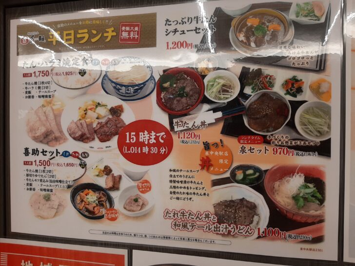 『味の牛たん喜助 泉中央駅店』のメニュー
