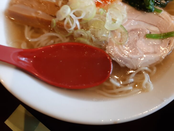 透き通ったスープは、鶏のうま味と魚介と生姜の香りも感じる、甘みもあるすごく美味しいです。これは何回も食べたくなるあじですね。