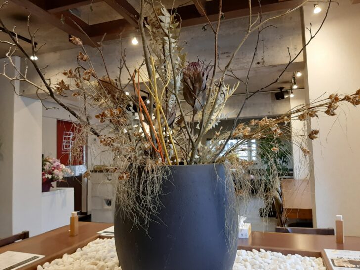 こんなお洒落な鉢植えがあるなんて、とても蕎麦屋さんとは思えないですね。