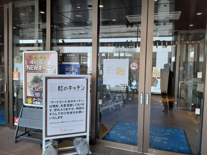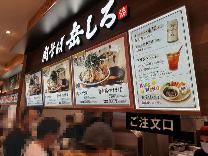 『肉そば岳しろ』がオープンしたのは「三井アウトレットパーク仙台港」2Fのフードコート「杜のキッチン」ですね。こちらの各店舗のメニュー見本写真にも追加されていました。