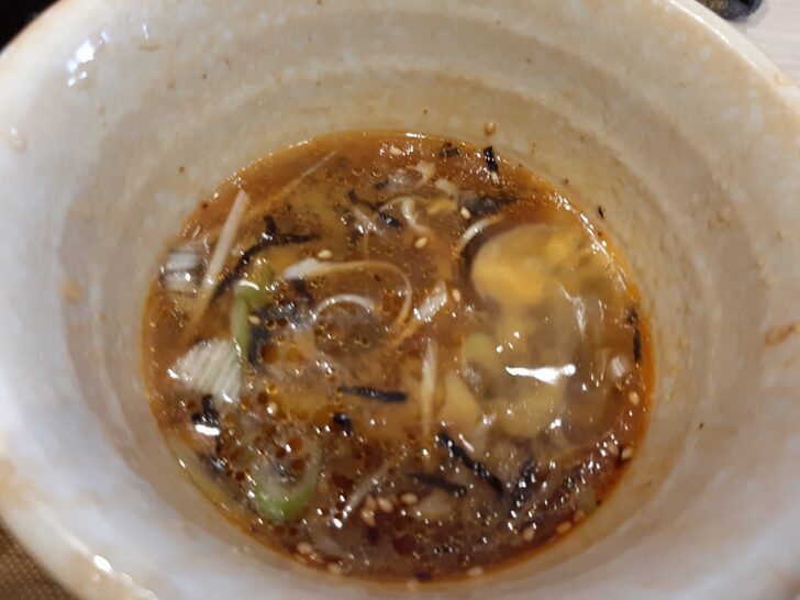これが冷たいつけだれです。量が少ないように見えますが、実際食べてみたら充分でした。